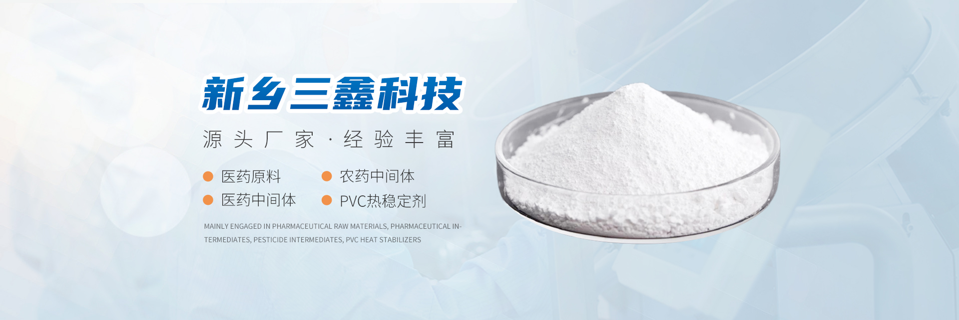 新鄉市三鑫科技有限公司主要從事醫藥原料、醫藥中間體、農藥中間體、PVC熱穩定劑、精細化學品和有機中間體。